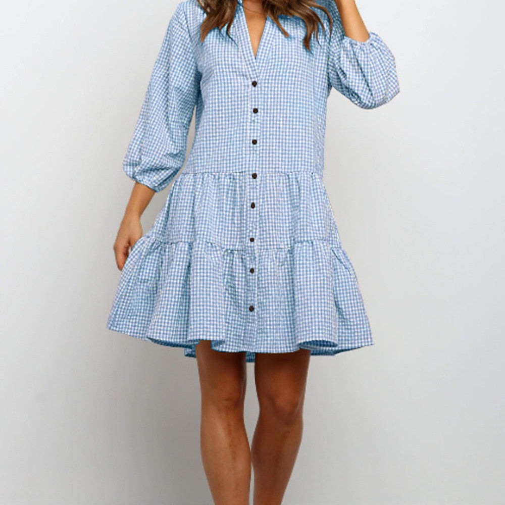 Women's Elegant Plaid V-Neck Mini Dress - Eva